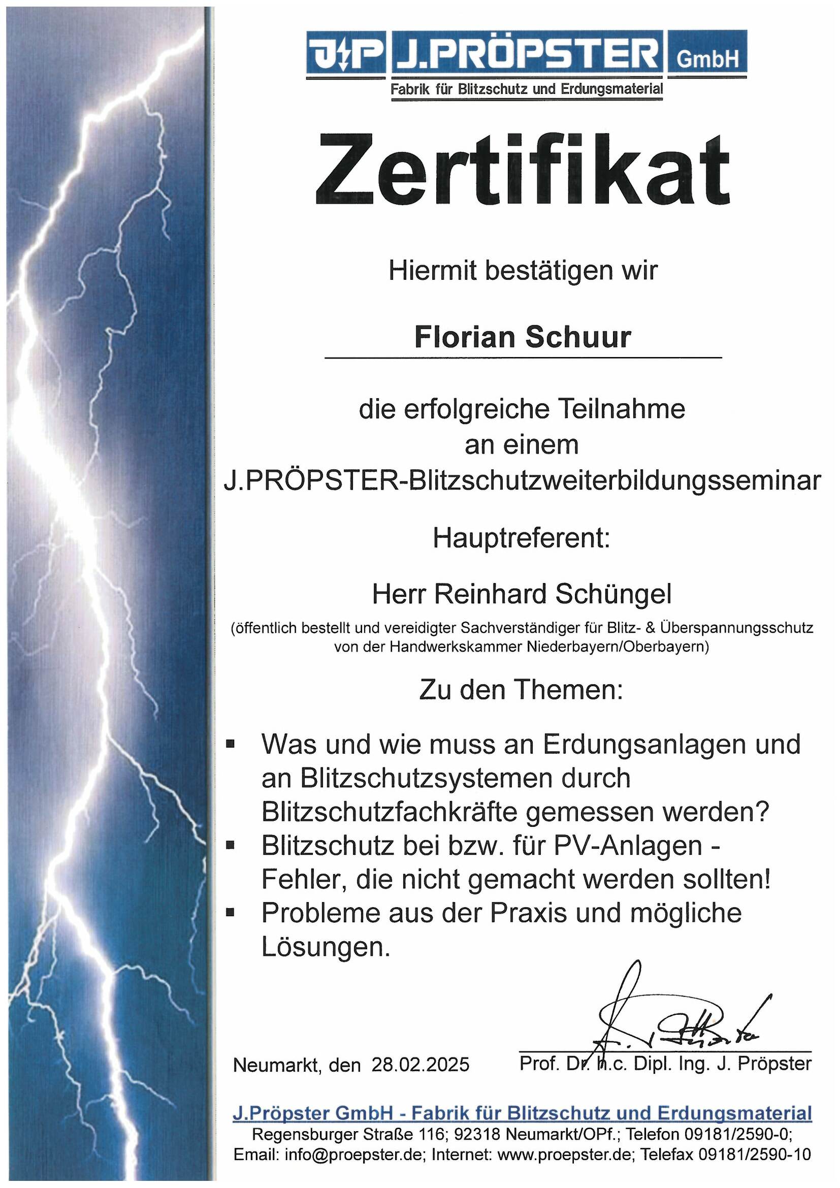 Pröpster Blitzschutzweiterbildungsseminar – Schuur